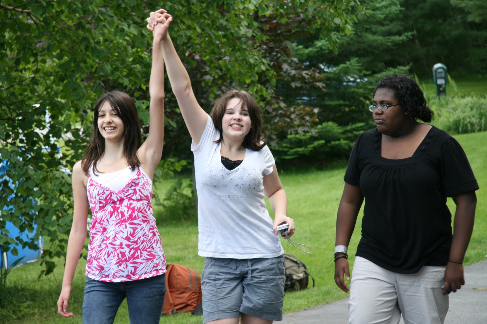 I called for the girls, who were splashing and shouting in the pool, and couldn't hear me. I hollered louder, "Girls! I need your help! GIRLS!" That finally yielded a dripping wet Bug, who peered down over the edge of the hole at me, then very gamely helped to haul me out by one arm.